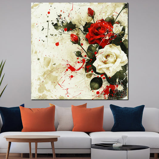 Elegante Rosen mit Farbspritzern in rot und weiß Wandbild Kunstwerk
