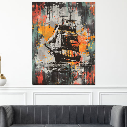 Pop Art Segelschiff Painting Style Wandbild Kunstwerk