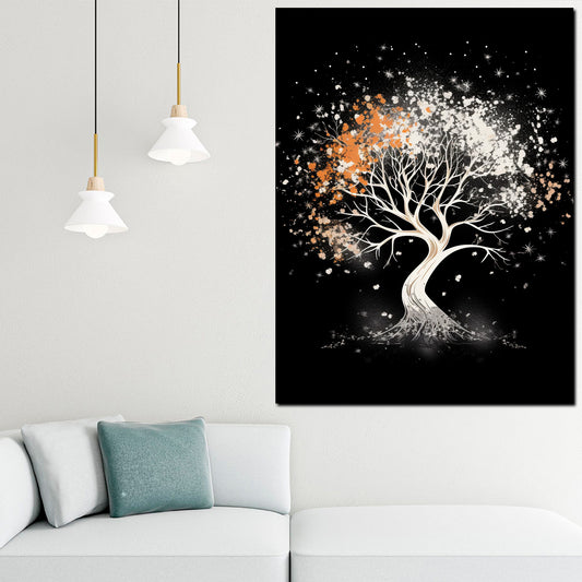 Abstrakt weißer Baum Dark Style Wandbild Kunstwerk