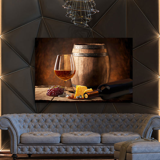 Modern Wein mit Käse und Trauben Wandbild Kunstwerk