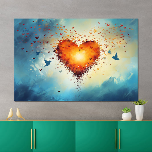Abstrakt Herz im Himmel mit Vögel Wandbild Kunstwerk