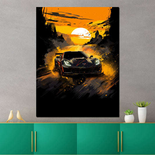 Street Art Sportwagen in der Abenddämmerung Wandbild Kunstwerk