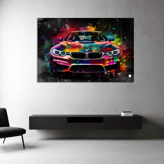 Farbspritzer Sportwagen BMW Pop Art Wandbild