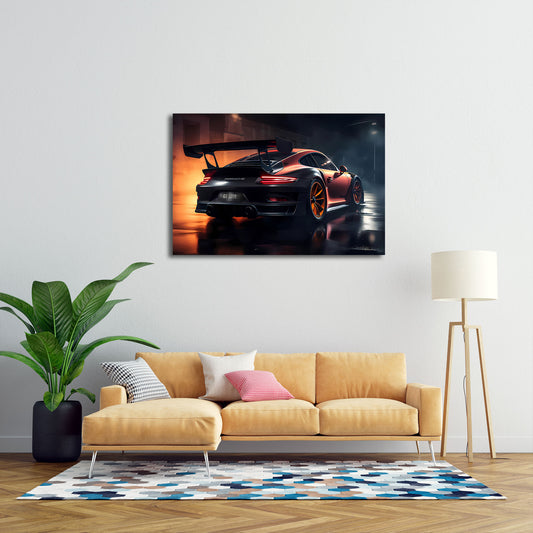 Porsche 911 GT Auto Straße Regen rote Akzente Wandbild