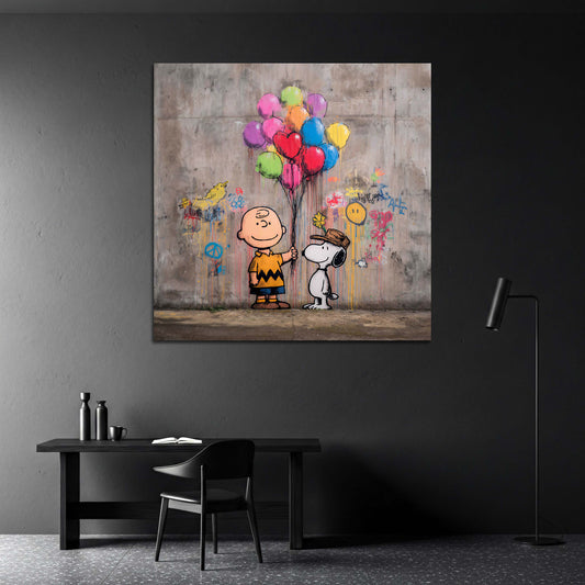 Pop Art Freundschaft Charlie Comicstil Graffiti und Luftballons Wandbild