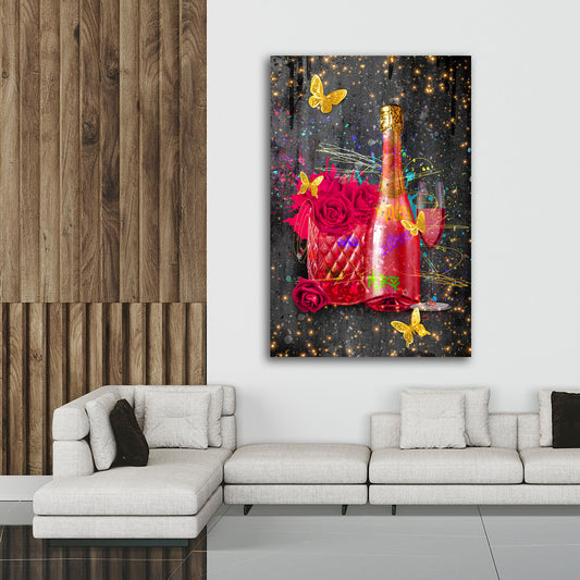 Champagner Lifestyle Street Art Flasche Wandbild Kunstwerk