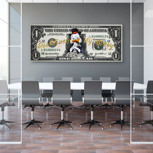 Pop Art Duck - My Money My Rules auf Dollar Note Wandbild Kunstwerk