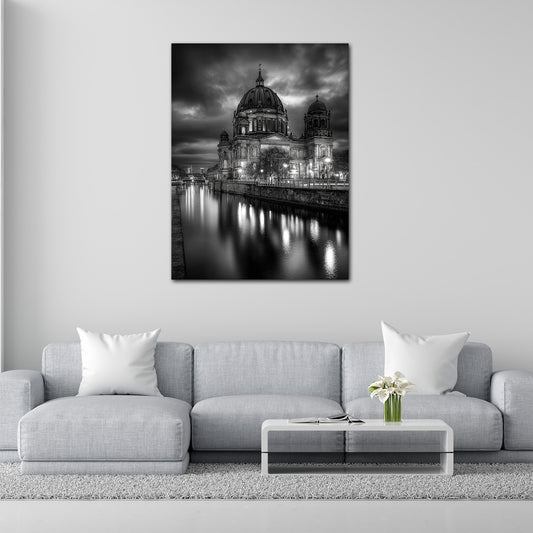 Berlin Sehenswürdigkeit Dom bei Nacht am Wasser Wandbild