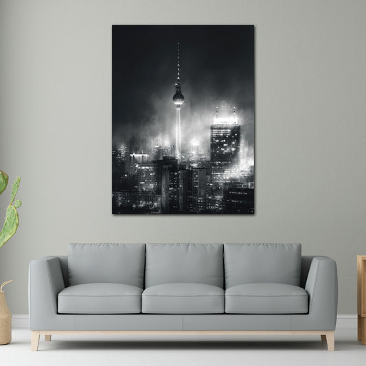 Berlin Skyline Fernsehturm im Lichtschein Wandbild