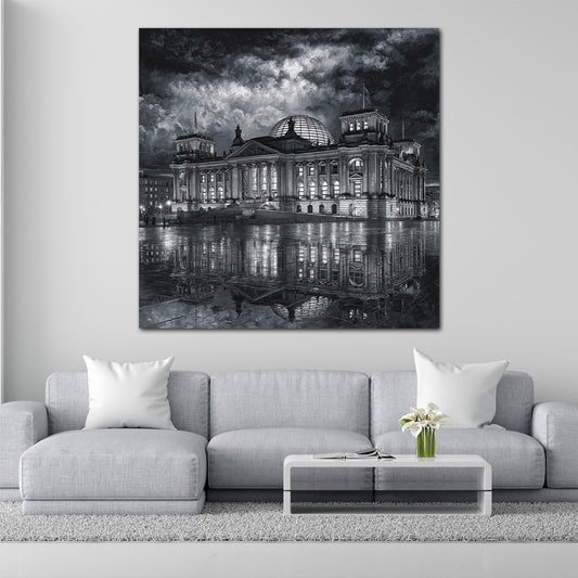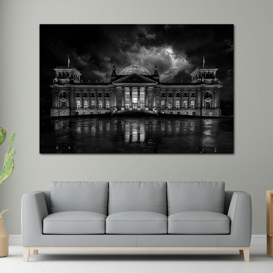 Berliner Reichstag dramatische Lichtstimmung bei Nacht Wandbild