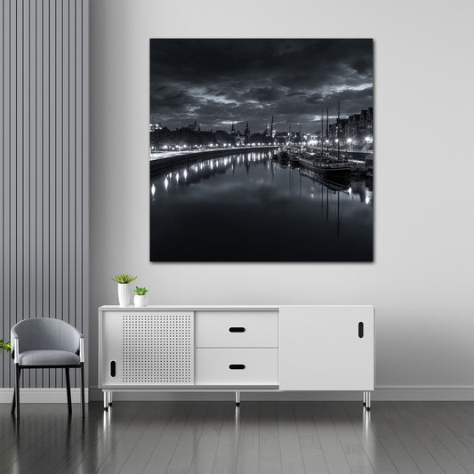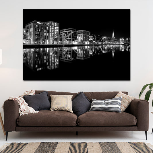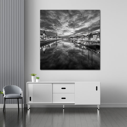 Bremer Altstadt Schiffe und Lichter Weser schwarz weiß Wandbild