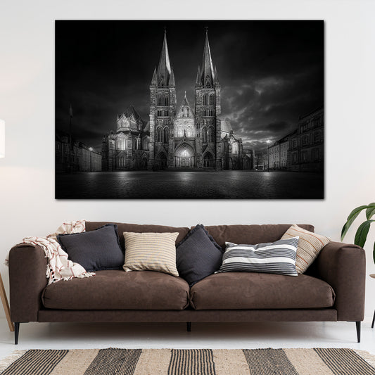 Kathedrale St. Petri Bremen Nachtaufnahme schwarz weiß Wandbild