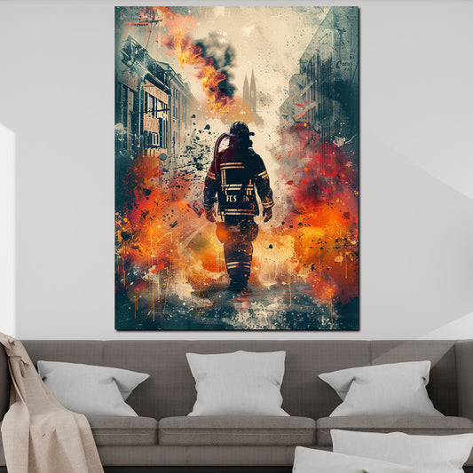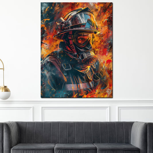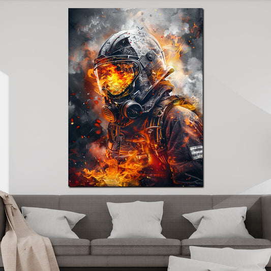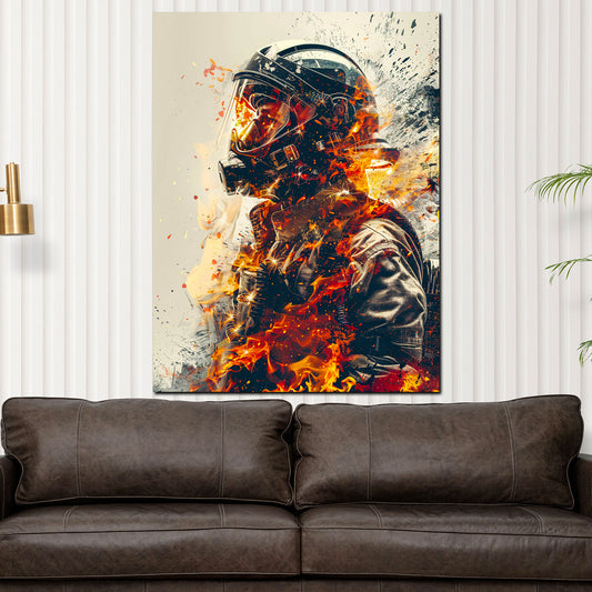 Abstrakt Feuerwehrmann im Einsatz Fire Style Wandbild Kunstwerk