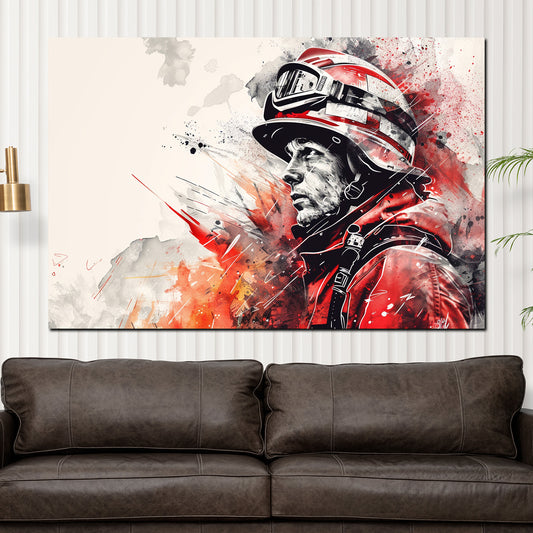 Abstrakt charismatischer Feuerwehrmann im Einsatz Wandbild Kunstwerk