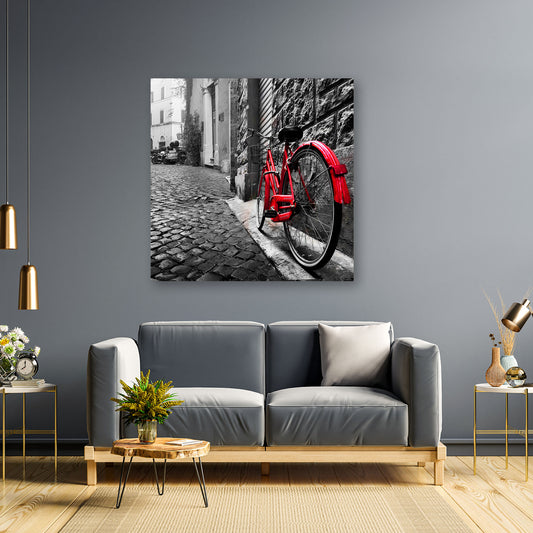 Rotes Fahrrad schwarz weiß Wandbild Kunstwerk