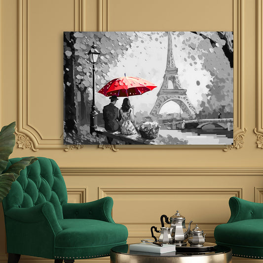 Paar mit rotem Regenschirm in Paris Wandbild Kunstwerk