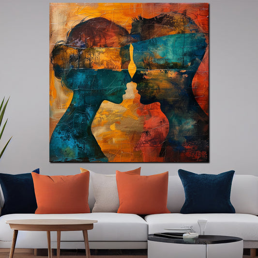 Silhouetten eines Paares in abstrakten Farben Wandbild Kunstwerk
