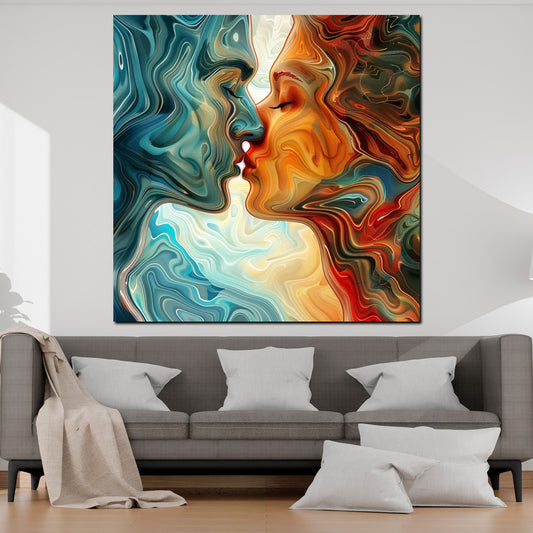 Abstrakt Paar in wellenförmigen Farben Wandbild Kunstwerk