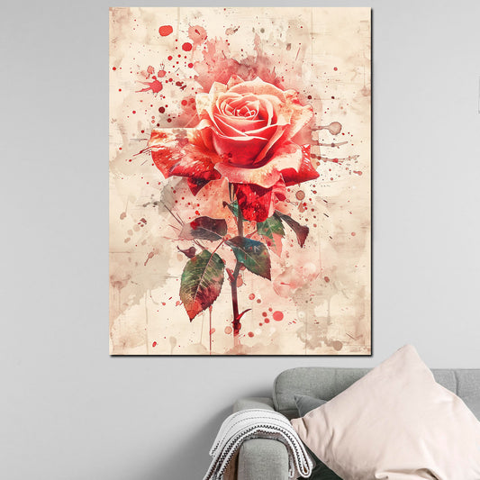 Rose in rot abstrakt Aquarell Wandbild Kunstwerk