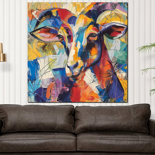 Abstrakt mit farbenfroher Ziege Wandbild Kunstwerk