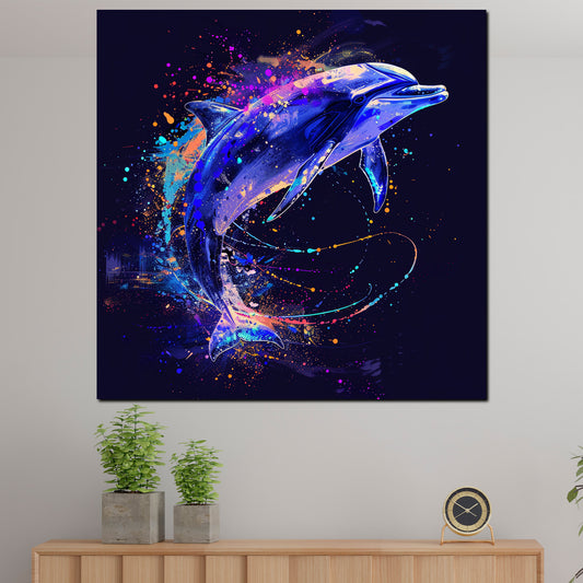 Abstrakt springender Delfin Wandbild Kunstwerk