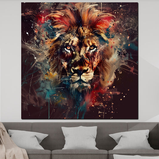 Pop Art majestätischer Löwe mit abstrakten Farben Wandbild Kunstwerk