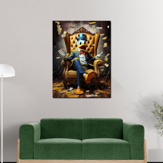 Comic Duck im Sessel, Motivation Geldregen Wandbild Kunstwerk