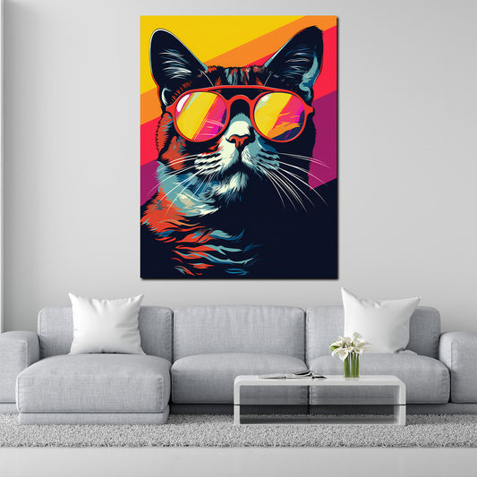 Pop Art Katze mit Sonnenbrille Wandbild Kunstwerk