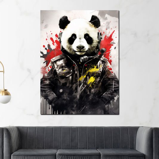 Pop Art Panda in Uniform Wandbild Kunstwerk