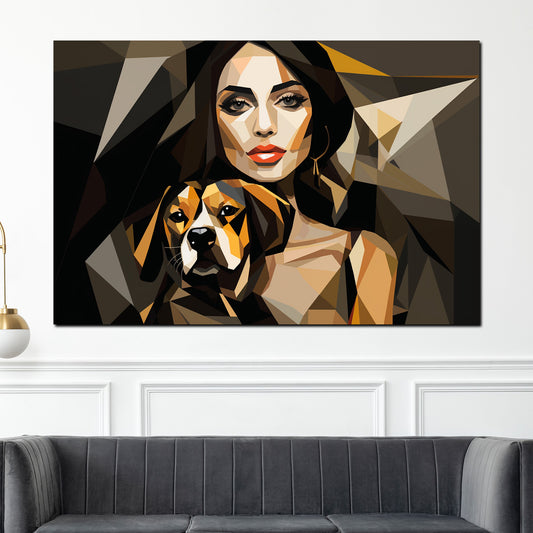 Abstrakt Frau mit Hund Wandbild Kunstwerk