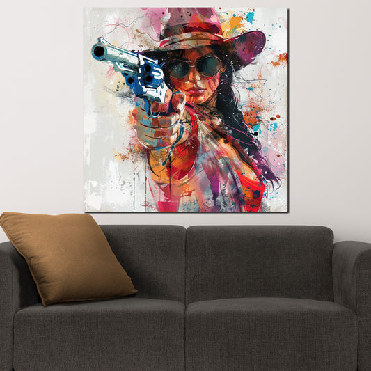 Pop Art Frau Shooting Beauty Wandbild Kunstwerk