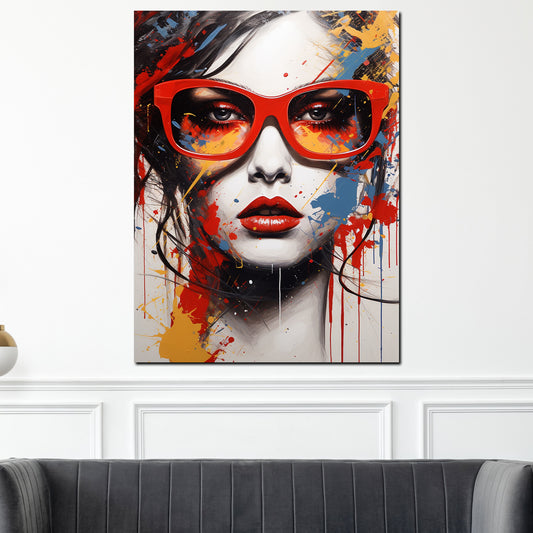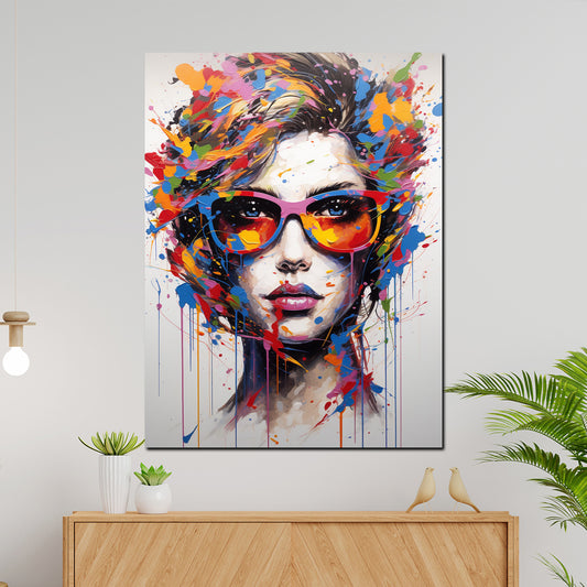 Wunderschönes Frauengesicht mit Sonnenbrille Colour Wandbild Kunstwerk