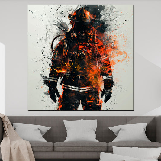 Abstrakt Feuerwehrmann mit Anzug und Gasmaske Wandbild Kunstwerk