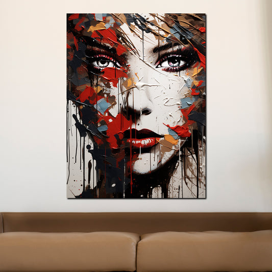 Abstrakt Frauengesicht red Style Wandbild Kunstwerk