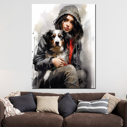 Abstrakt Mädchen mit Hund Wandbild Kunstwerk
