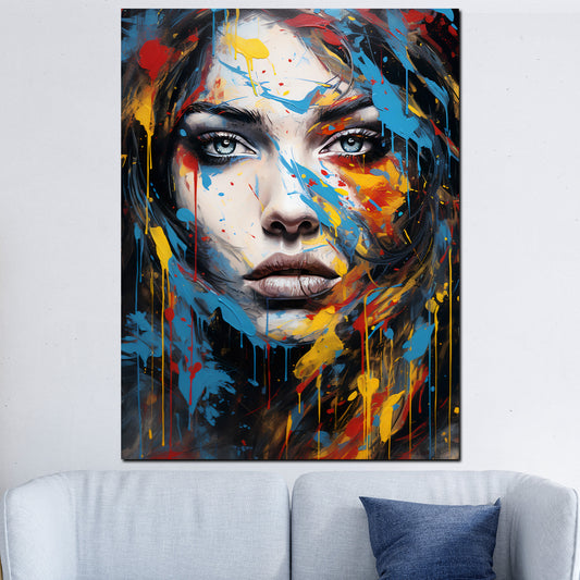 Wunderschönes Frauengesicht Colour Style Wandbild Kunstwerk