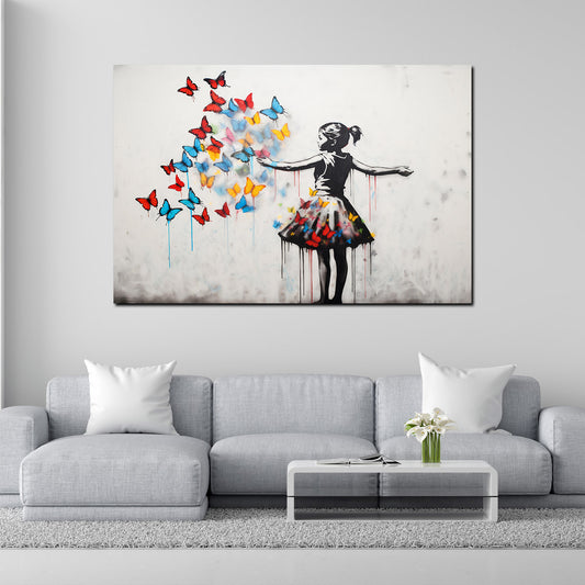 Schmetterlinge Mädchen Street Art Wandbild Kunstwerk