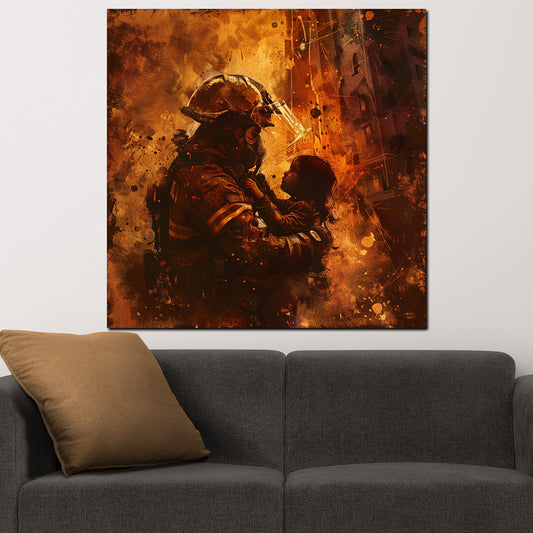 Abstrakt Beautiful Job Feuerwehrmann rettet Kind Wandbild Kunstwerk