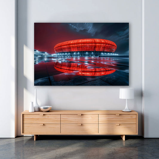 Allianz Arena rot - München Stadion Architektur mit Spiegelung Wandbild