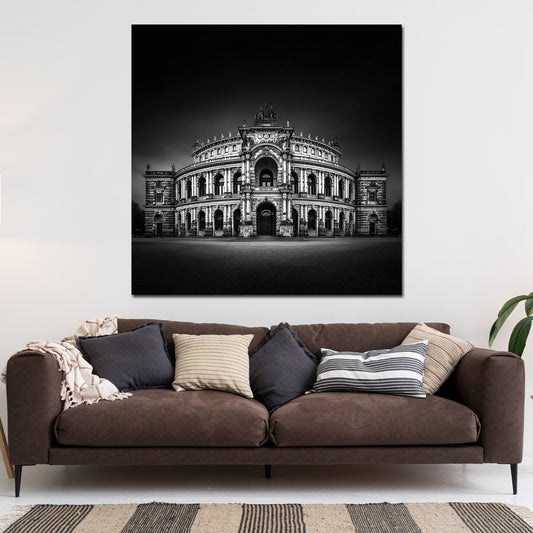 Opernhaus Dresden Wahrzeichen Symmetrie schwarz weiß Wandbild