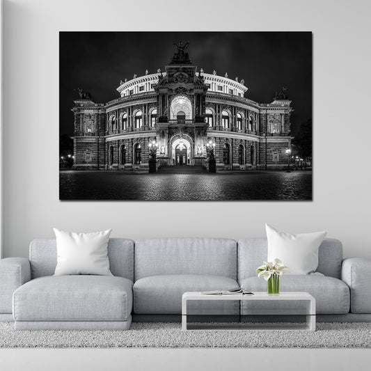 Semperoper Dresden Fotografie bei Nacht schwarz weiß Wandbild