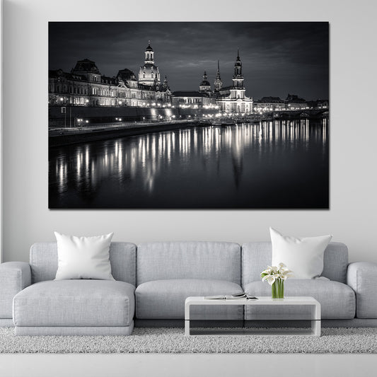 Uferpromenade Elbe Dresden Abendlicht schwarz weiß Wandbild