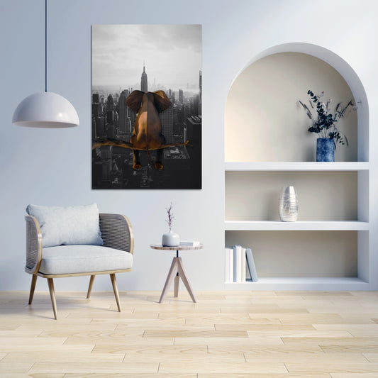 Elefant auf Ast in New York Wandbild Kunstwerk