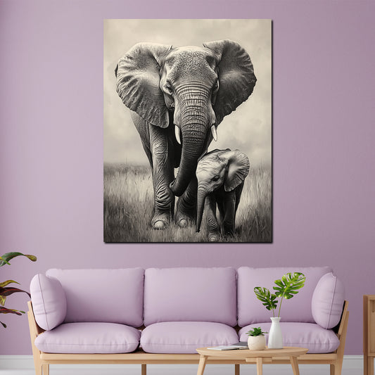 Elefantenmutter Zärtlichkeit Wildtier Wandbild Kunstwerk