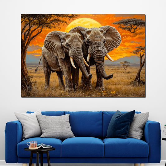 Elefantenpaar Abendlicht Wildnis Wandbild Kunstwerk