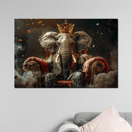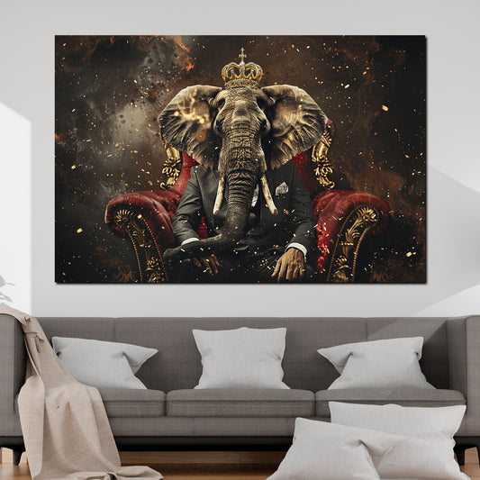 Majestätischer Elefant mit Anzug und Krone auf königlichem Thron Wandbild Kunstwerk