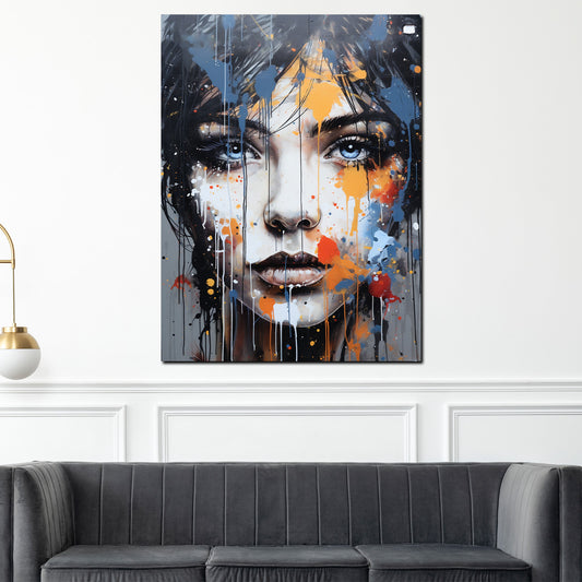 Wandbild Frauengesicht Splatter Style Kunstwerk Wunderschönes