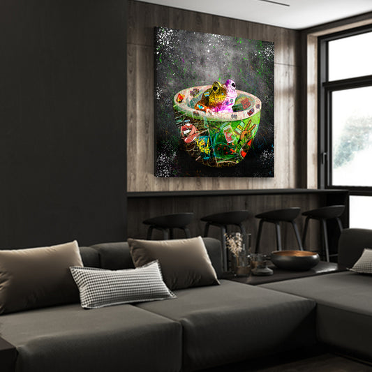 Frosch in Badewanne Graffiti Pop Art Style Wandbild Kunstwerk
