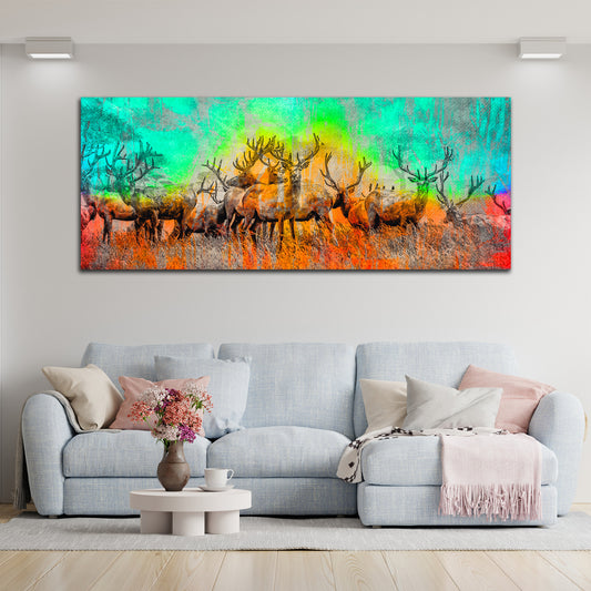 Hirsche Herde Colour Edition astrakt Wandbild Kunstwerk