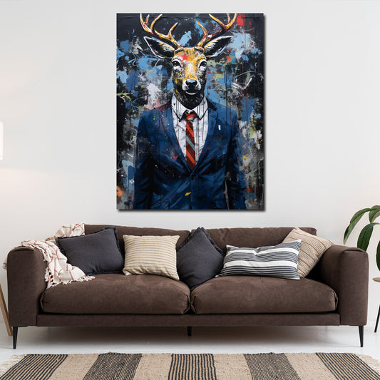 Abstrakt Hirsch im Anzug Wandbild Kunstwerk